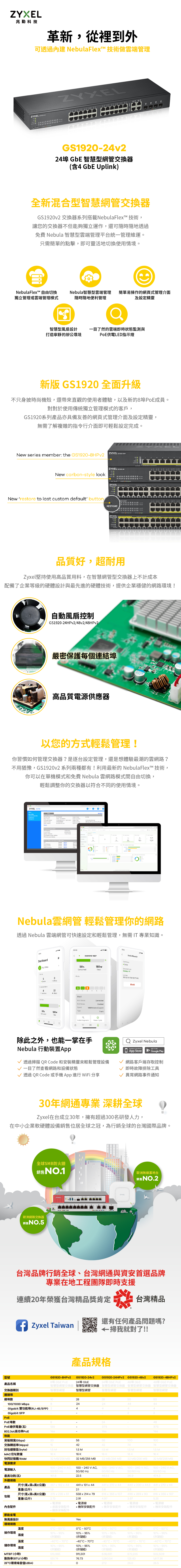 提供8埠1000Mbps RJ-45 PoE + 2組 combo埠具備L2~L4 ACL支援IEEE 802.3at 乙太網路供電,每埠可達30瓦;至多130瓦。支援IPv6支援ZON及Smart Connect功能免費版雲端管理/獨立式管理
