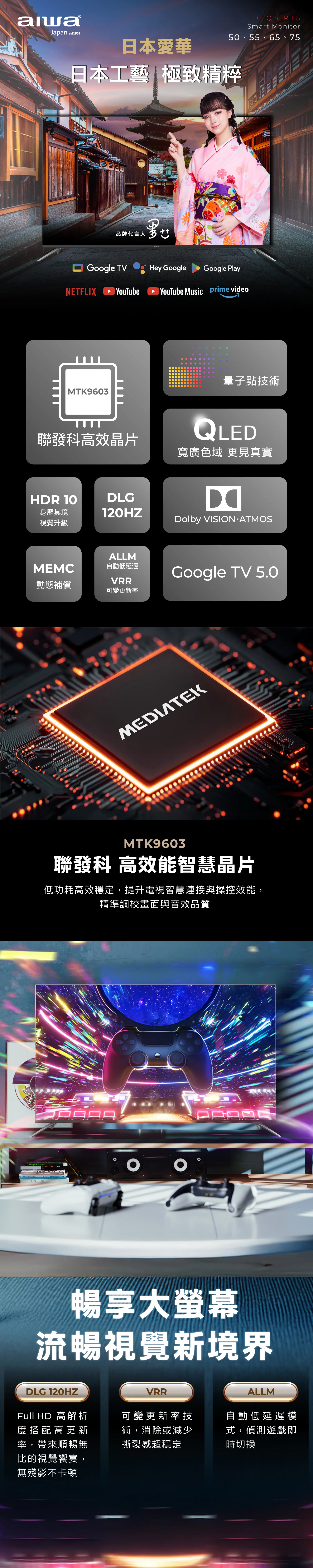AIWA 愛華 50吋 QLED 智慧聯網顯示器 (GTQ) AI-50GTQ7 名世購物網