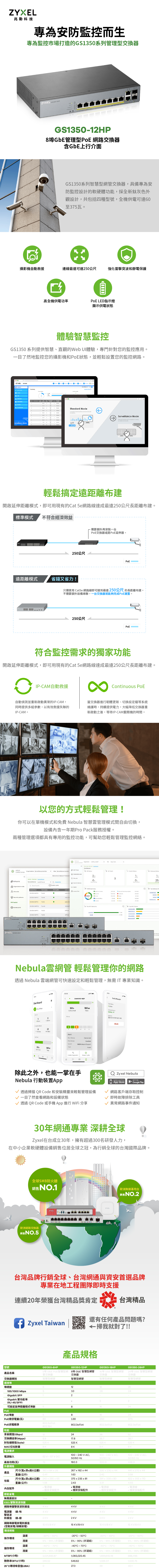 Zyxel 合勤 GS1350-12HP 監控專用管理型交換器 名世購物網