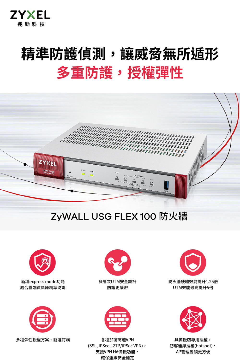 Zyxel 合勤 USG FLEX 100整合式安全閘道器 雲端防火牆 名世購物網