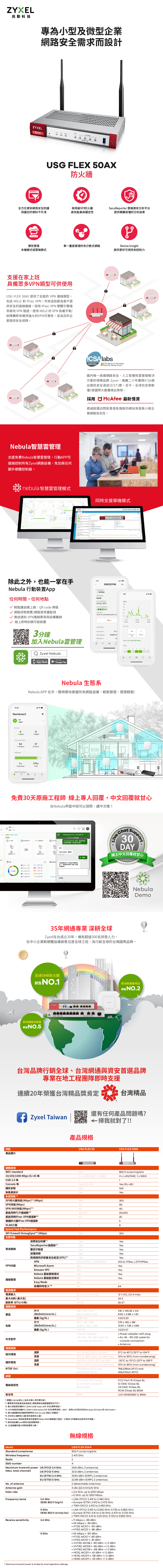 Zyxel 合勤 USG FLEX 50AX 雲端防火牆 國安資安分析 網路VPN 路由器 名世購物網