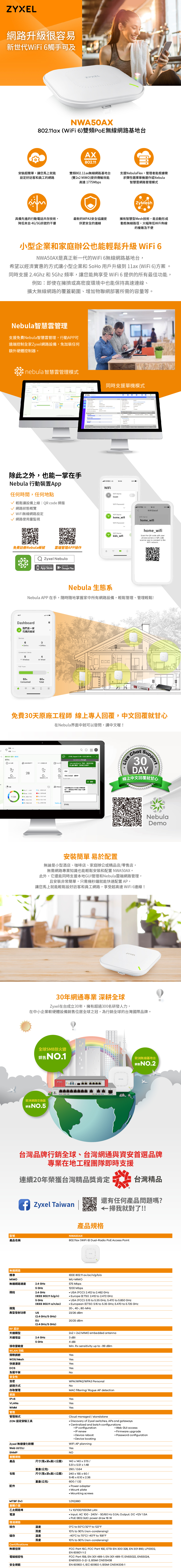 Zyxel 合勤 NWA50AX WiFi 6 雙頻 NebulaFlex無線網路基地台 名世購物網