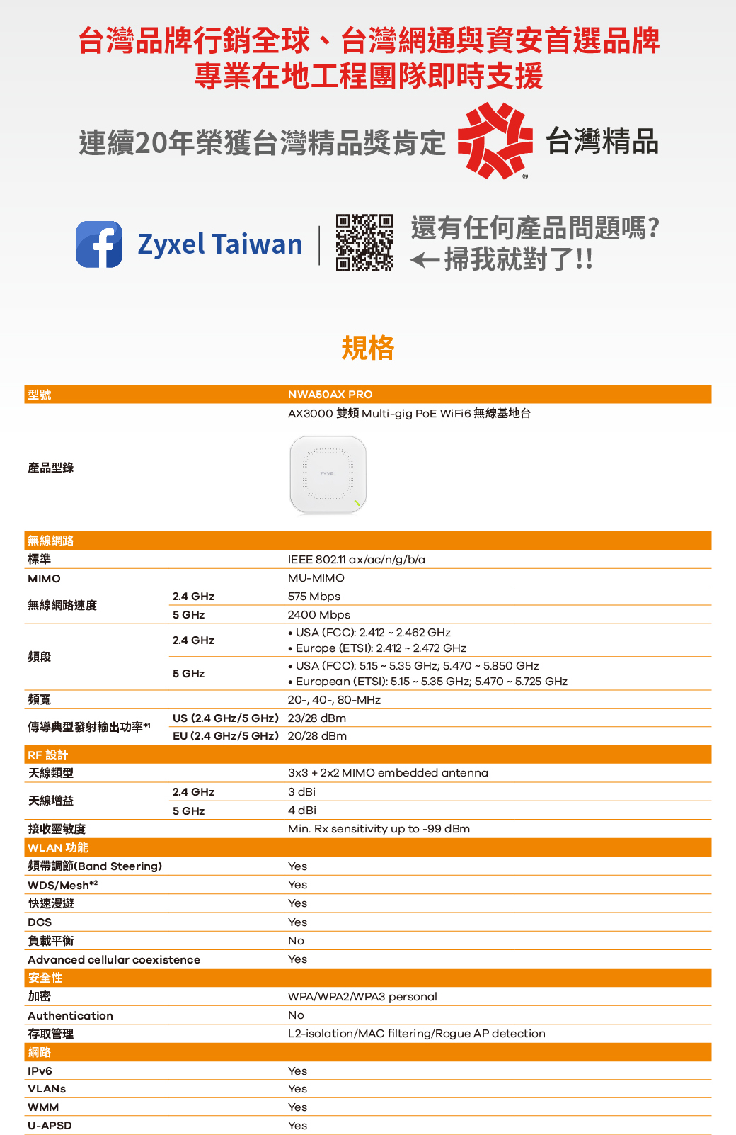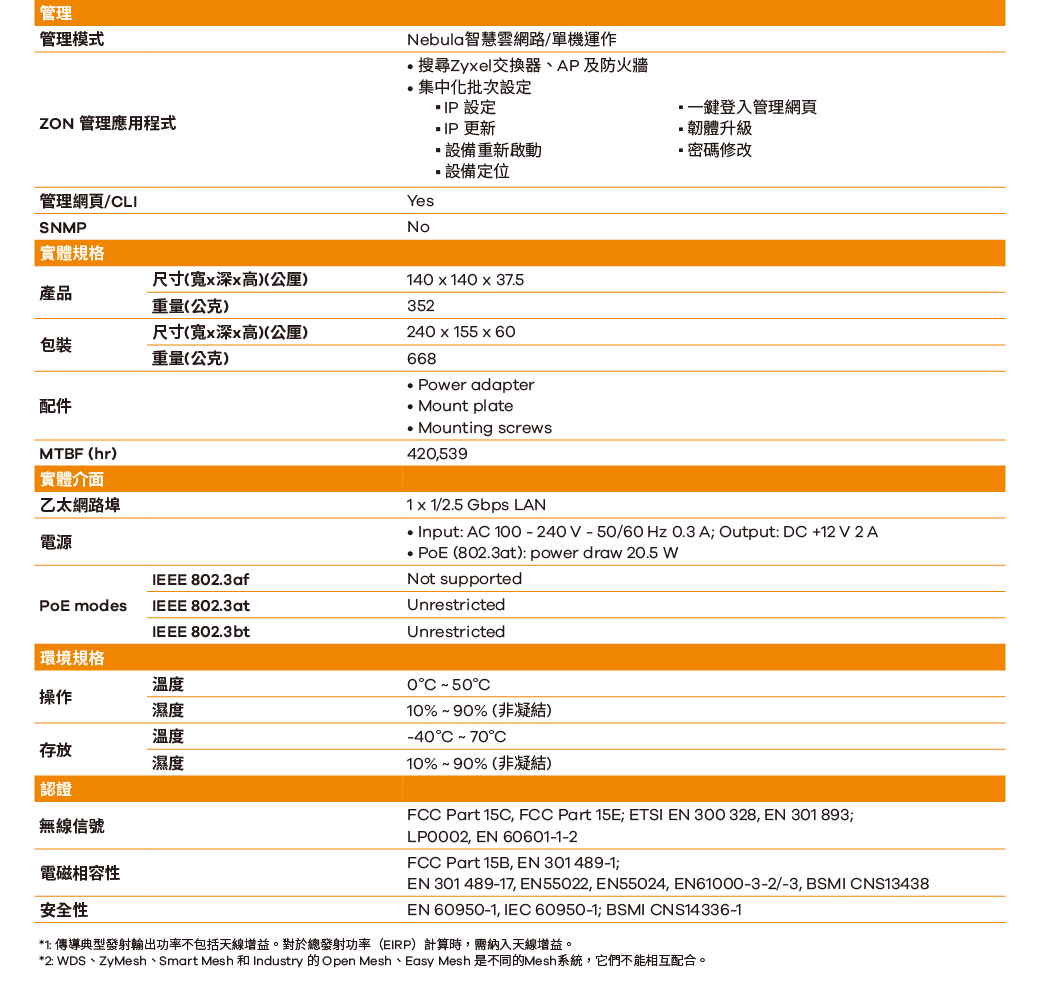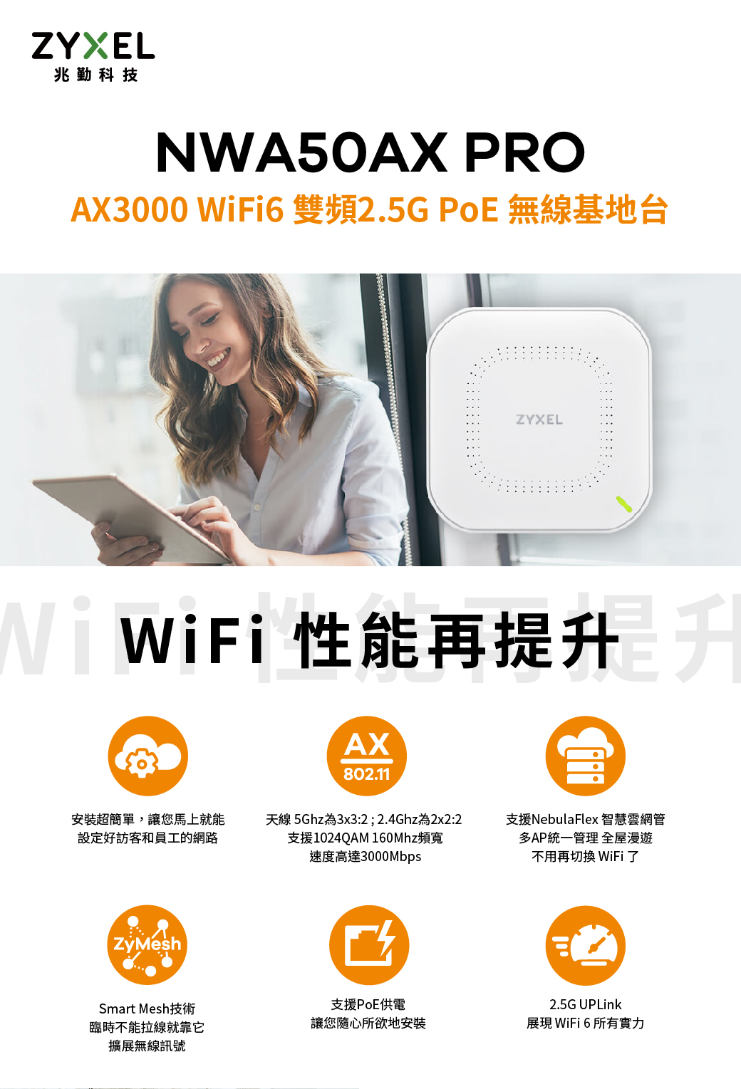 Zyxel 合勤 NWA50AX Pro WiFi 6 雙頻 NebulaFlex無線網路基地台 名世購物網