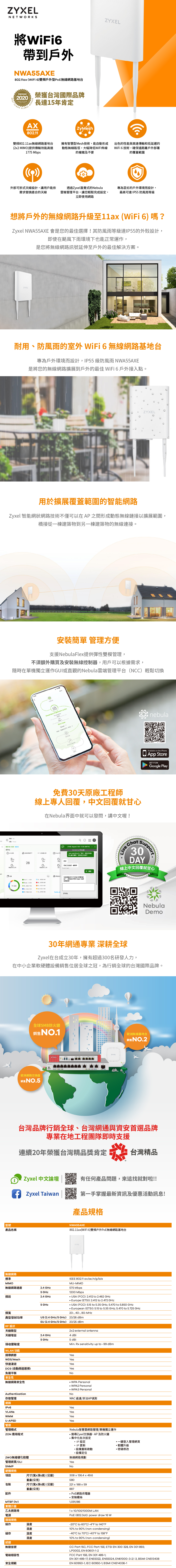 Zyxel 合勤 NWA55AXE WiFi 6 雙頻 NebulaFlex 戶外型無線基地台 名世購物網