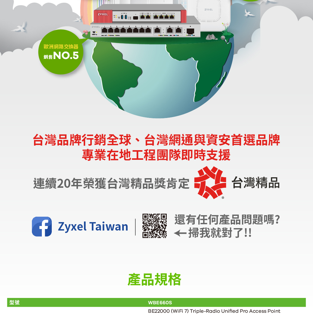 Zyxel 合勤 WBE660S WiFi 7 三頻 NebulaFlex Pro 無線基地台 名世購物網