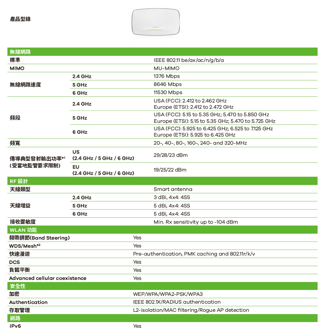 Zyxel 合勤 NWA110BE WiFi 7 雙頻 NebulaFlex 無線基地台