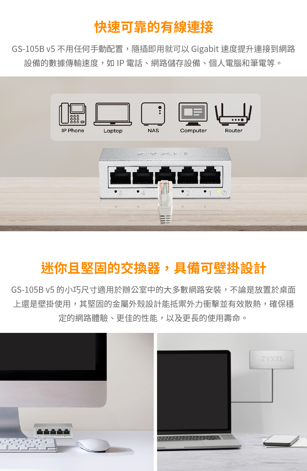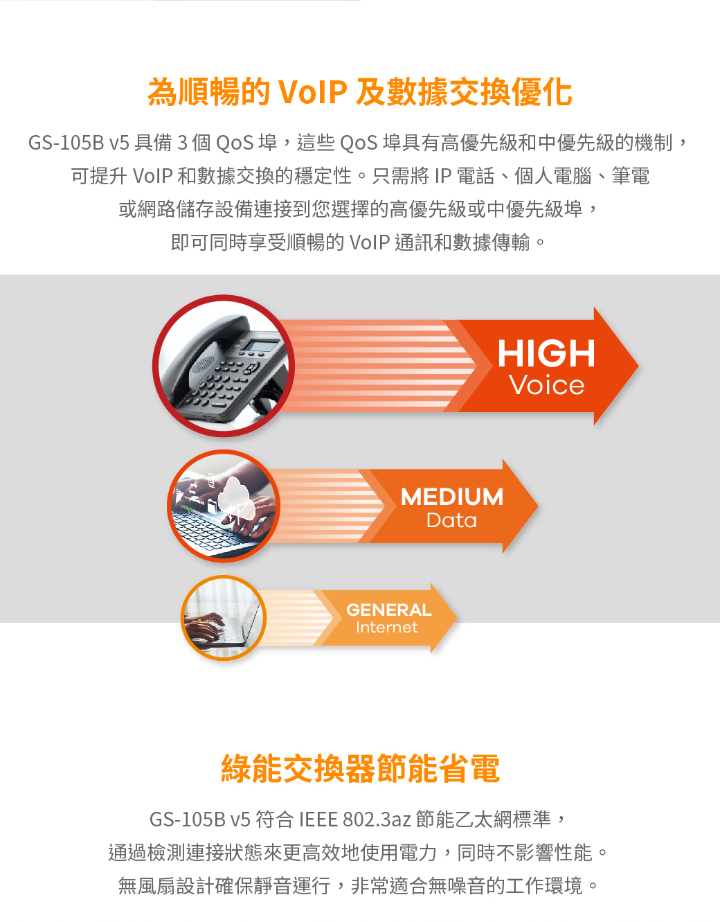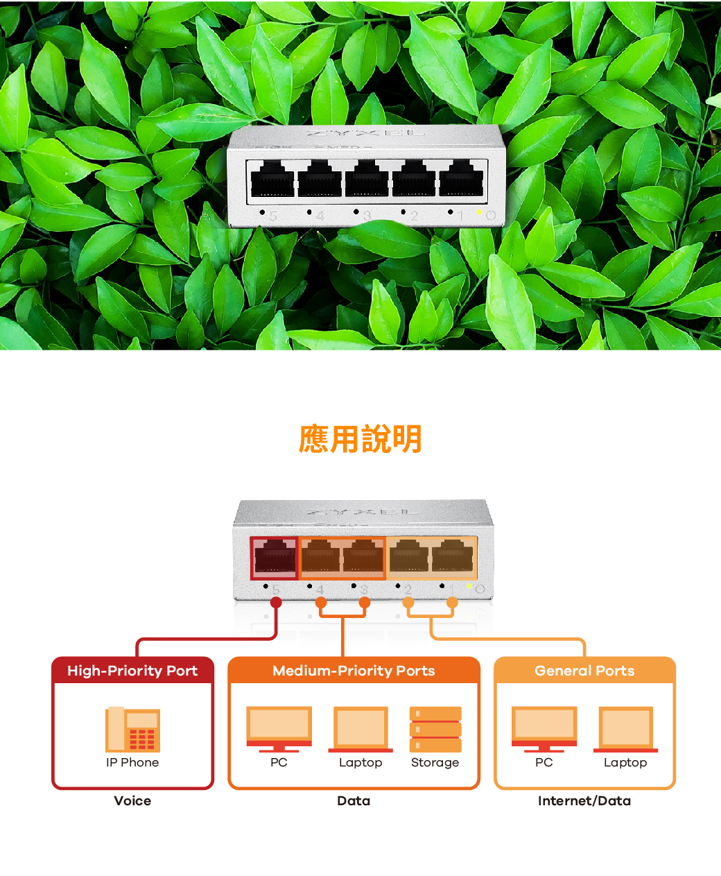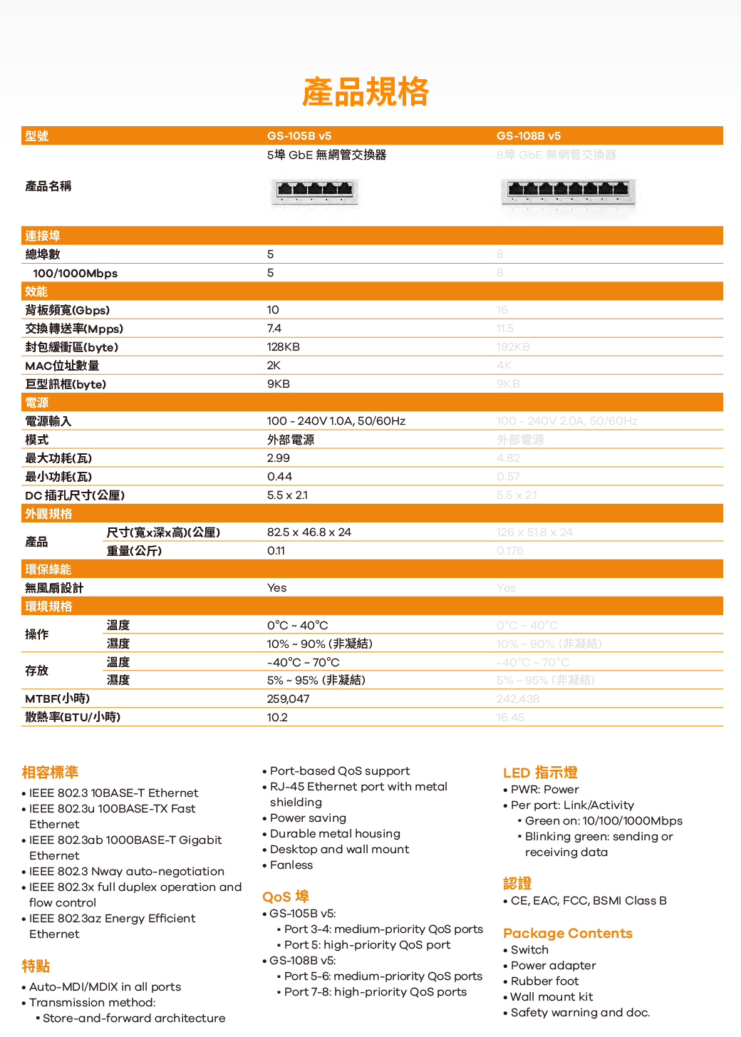 可同時連接數個多媒體裝置並提供高速的 Giga 傳輸服務具備QoS設計的VIP通道,可確保VoIP通訊以及需要保障頻寬的應用服務能享有流暢的傳輸品質鐵殼設計的堅固外型適用於各種環境 / 全機享有三年保固
