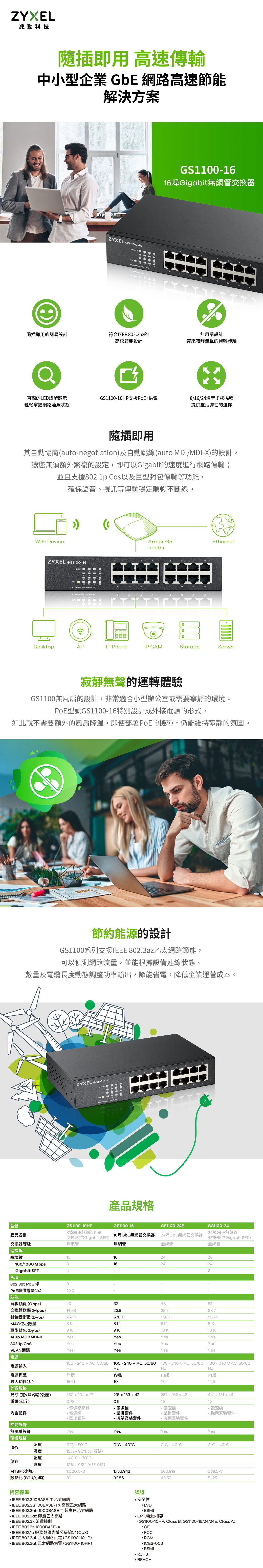 Zyxel 合勤 GS1100-16 Gigabit無網管交換器 名世購物網