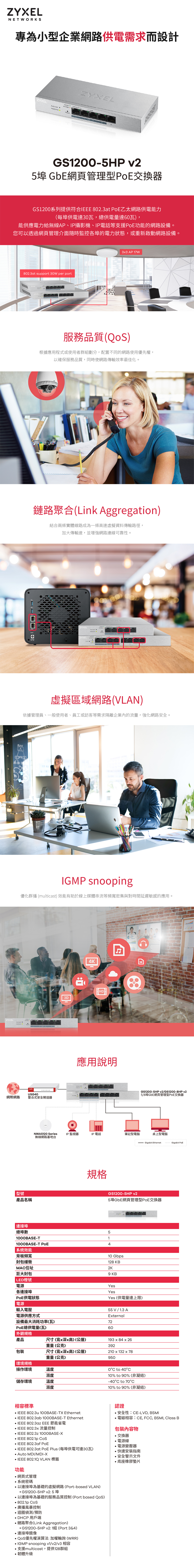 只須點選幾個按鈕,即可完成網路配置,簡單的網頁管理具備5個Gigabit連接埠,其中包含4埠支援802.3at標準的PoE供電埠VLAN、QoS、鏈路聚合、IGMP snooping一應俱全/原廠三年保固
