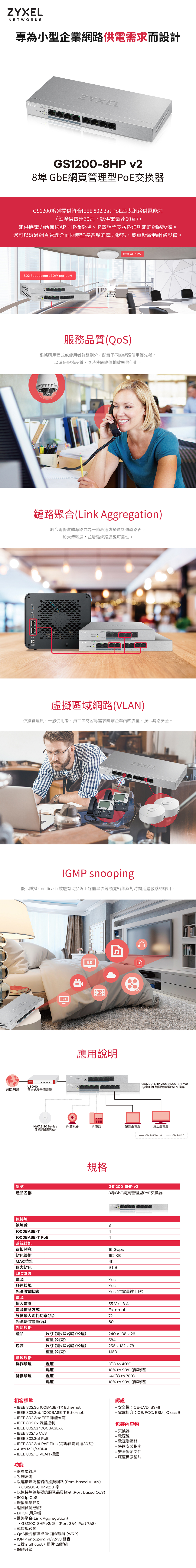 Zyxel 合勤 GS1200-8HP v2 網頁管理型 8埠Gigabit PoE交換器 名世購物網