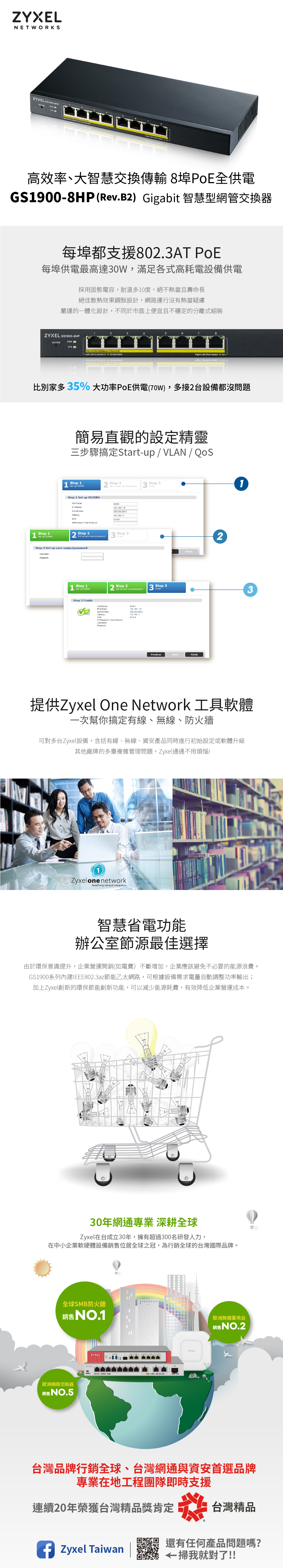 Zyxel 合勤 GS1900-8HP (Rev.B2) 智慧型網管8埠Gigabit PoE交換器 名世購物網