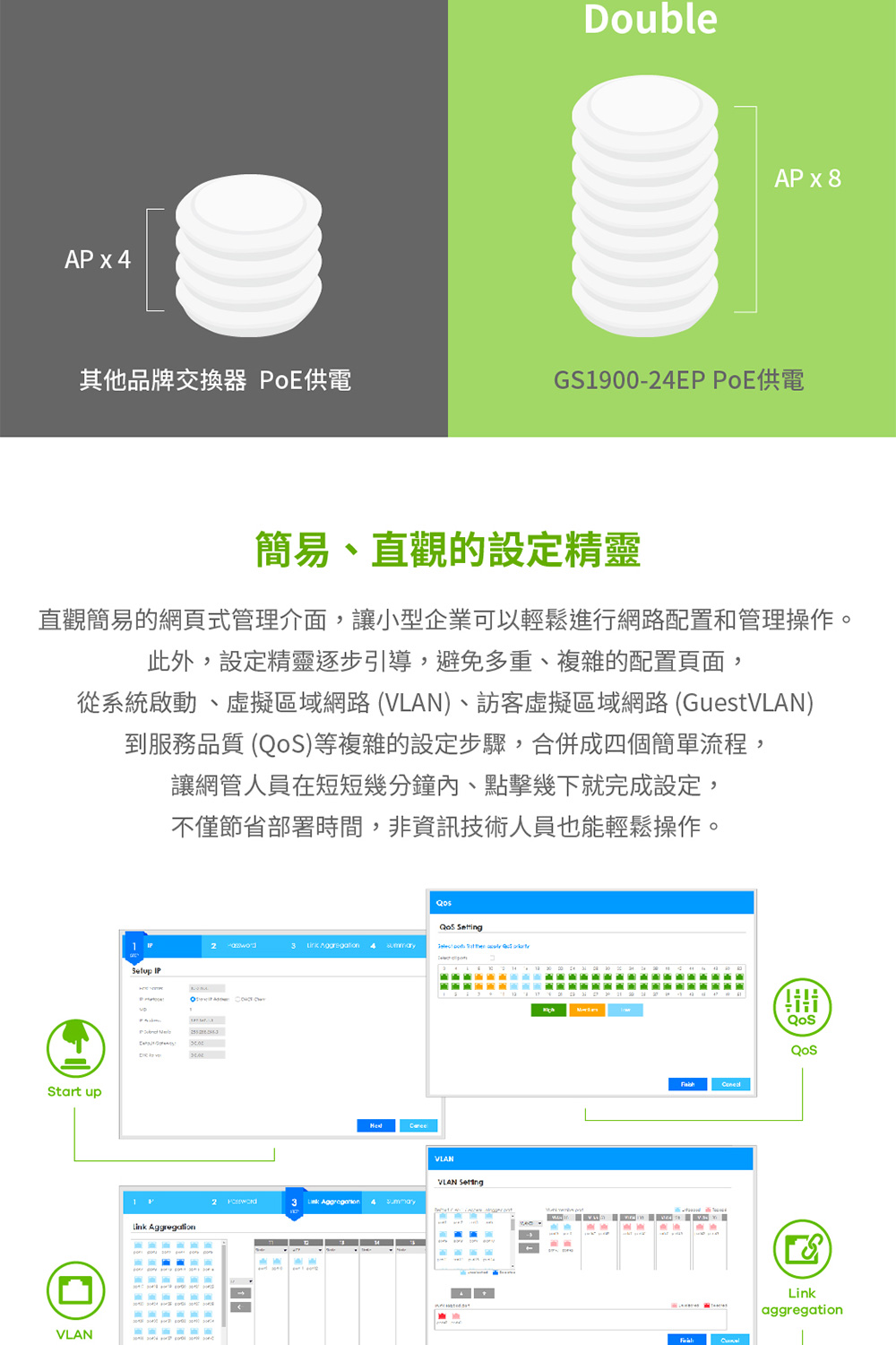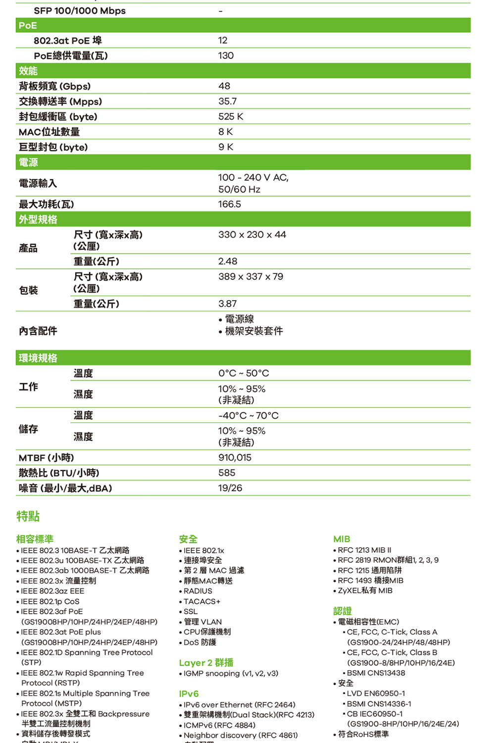 鏈路聚合/虛擬區域網路(VLAN)/無風扇設計/三年保固