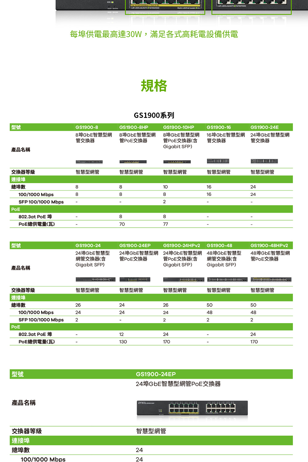 Zyxel 合勤 GS1900-24EP 智慧型網管24埠Gigabit PoE交換器 名世購物網