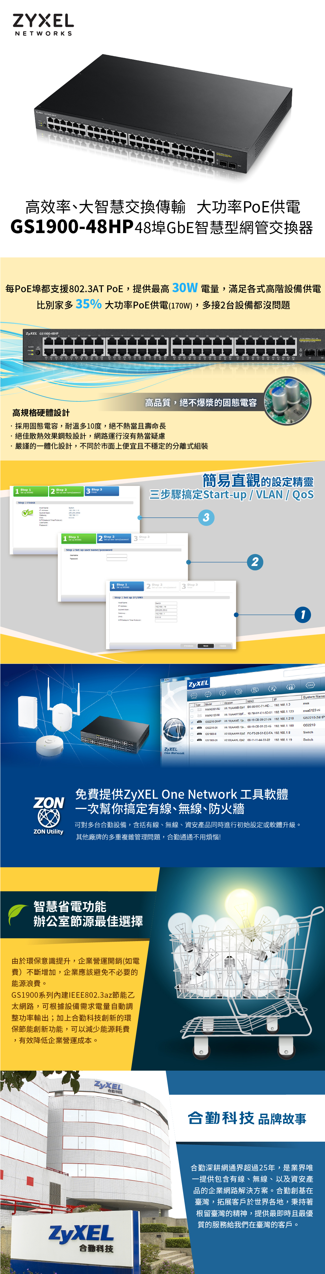Zyxel 合勤 GS1900-48HP 智慧型網管48埠GbE交換器 名世購物網