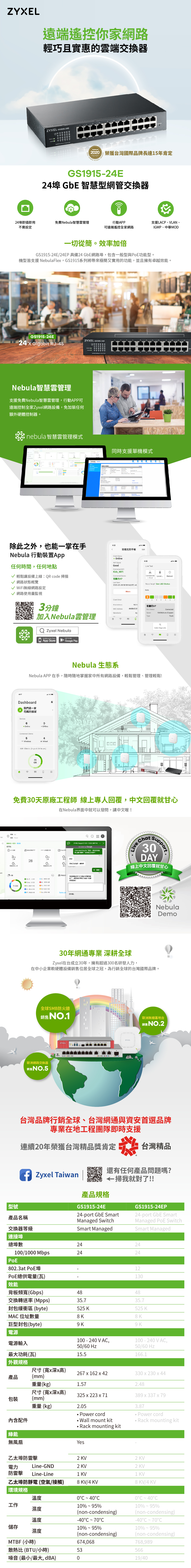 Zyxel 合勤 GS1915-24E 24埠GbE 智慧型網管交換器 名世購物網