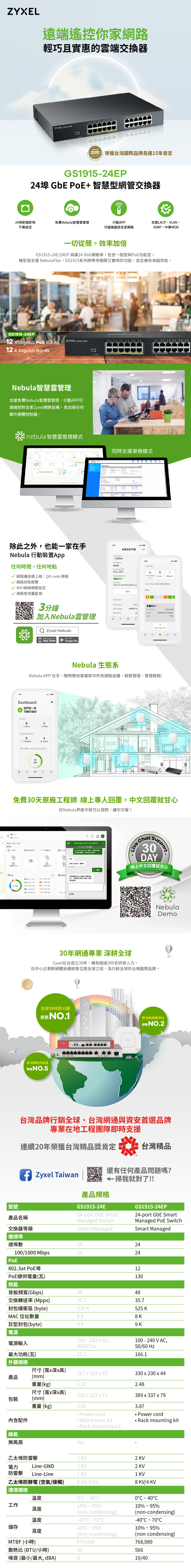 Zyxel 合勤 GS1915-24EP 24埠GbE 智慧型網管交換器 名世購物網
