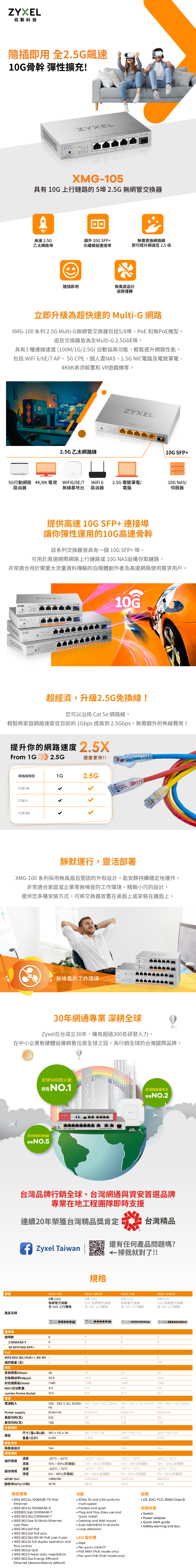 Zyxel 合勤 XMG-105 5埠2.5G無網管交換器 名世購物網